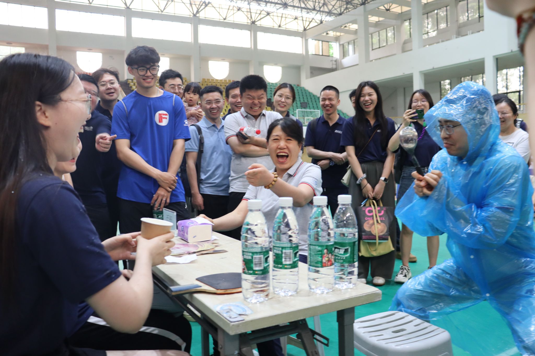 校庆主题日活动依次在排球场、足球场、詹天佑体育馆三个场地举行,2023级MPA学生组建的四支队伍(滴水Blow队、齐乐龙龙队、龙行大运队、梦想启航队)及校友代表队、教工代表队共六支队伍在各赛场上奋力拼搏。在排球场上开展的“趣味三大炮”活动,点燃各队伍热情,他们努力练习,竭尽所能,争取为本队伍拿到更高积分。