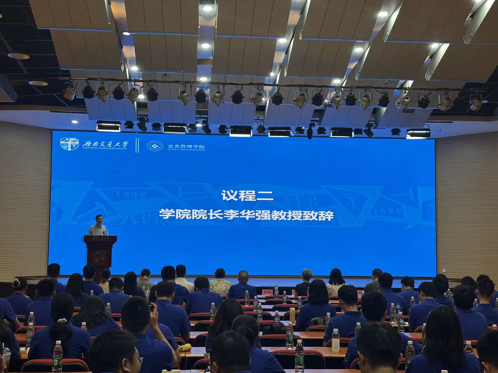 向2025级MPA新生表示热烈欢迎,并勉励同学们充分利用校内外优质资源,深化理论学习与实践能力。李院长对新生提出四点期望:胸怀大局、志存高远;勤学善思、勇于创新;团结协作、互学共进;坚守初心、勇担使命。他祝愿全体新生在西南交大收获充实精彩的研究生时光,也期待见证大家的成长与突破。