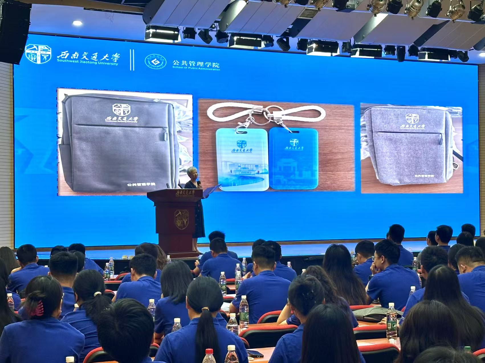 党委书记高凡教授介绍2025级MPA新生纪念品——以“载物之器”承载“育人之志”,高书记表示:“这两份礼物,既伴学子行稳求学路,更寄寓‘器以载道,笔绘公心’的深切期许。”高书记勉励新生,愿这份兼具实用价值与精神温度的心意,能伴随大家在公共管理的征途上,以器载道、以笔书华,终成致用之才。