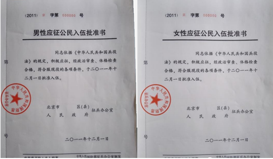 《入伍批准书》示例