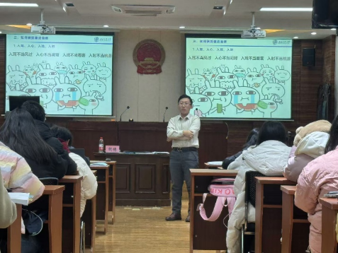 “青年时代,是激情满怀,富有朝气的时代,是放飞理想,人生出彩的时代。”习近平总书记对青年一代寄予厚望,而做到廉洁自律是实现无悔青春的必由之路。在第三部分中,胡博老师用朗朗上口的“入耳、入心、入戏、入时”“审己、责己、修己、克己”和“行路、行事、行远、行善”,为青年一代践行廉洁自律提供了切实可行的路线图。胡博老师希望学员们拥有强大的内心和坚韧的意志,严格遵守法律法规和学校各项规章制度,永葆端方正直的人生品格,度过问心无愧的大学时光。