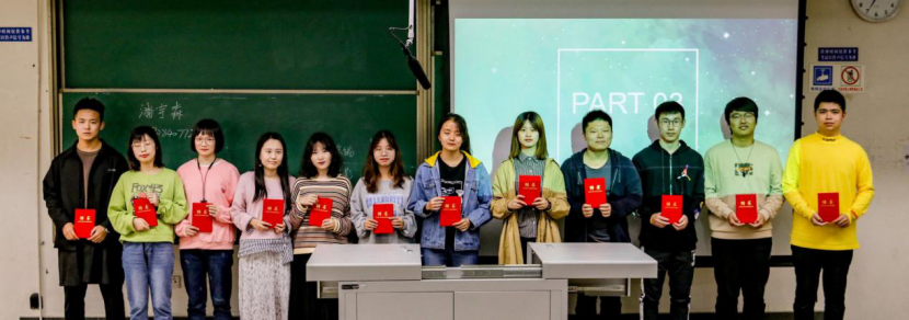 紧接着进入下一环节:主任团为各部长颁发聘书。在全场目光的聚焦下,主任们端着一本本精致的聘书郑重地授予台上站位整齐的新任部长,已经经历了多次工作锻炼的部长们对于这一荣耀的时刻表现出了成熟与稳重,但从他们的眼神中依旧能看出内心的无限喜悦,这更激发了新成员们对日后工作的渴望。