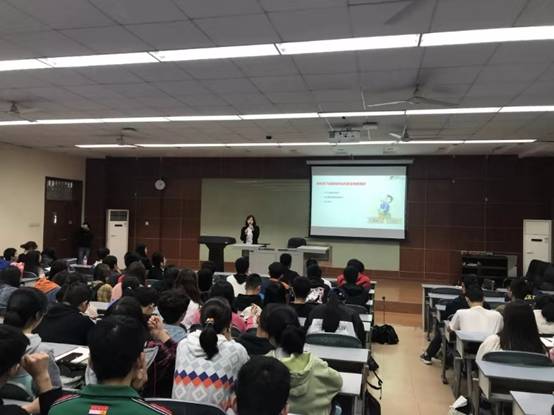 正式签约合作后的首次讲座。院党委余小英副书记和2019级辅导员石珮锦老师出席此次活动。