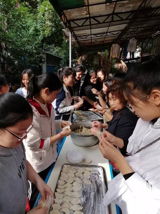 表演完毕,正迎午饭时刻,志愿者们端上准备好的食材开始包饺子、煮饺子。志愿者们将自己的爱心与祝福同馅料一起,包进一颗颗热腾香喷的饺子, 温暖着老人们的胃与心灵。
