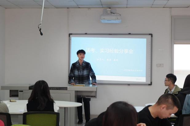 学生在2019年法律职业资格考试上的情况予以介绍。接着,受邀的二位学长学姐就复习规划、应试技巧、心态调整等方面,依次为大家分享备战法考的经验。杨豪学长建议同学们根据考试内容安排侧重点,强调在复习法考和日常学习方法的选择方面,适合自己的才是最好的,建议同学们结合自身特点进行复习规划。秦彩学姐提醒同学们关注时事,了解最新的法律知识。同时以自身经历举例,介绍了法学专业学生在发表论文和校外实习方面所需要注意的事项。在答疑环节,同学们积极发言,阐述自身在备考还有实习过程中遇到的问题,二位学长学姐分别进行了耐心细致的答疑。交流会最后,学长学姐再一次强调了备战法考过程中保持良好心态的重要性,提醒同学们要调整心态,积极乐观地备考。学长学姐们生动活泼的语言、严谨周密的思维和高质量的备考方案,赢得了同学的热烈反响,使得本次交流会的气氛活跃融洽。