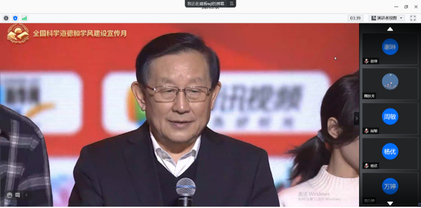 今年的宣讲活动,响应十九届五中全会关于“加强学风建设,坚守学术诚信”的号召,由往年的一场报告会拓展为学风建设宣传月,引导广大师生和科技人员弘扬科学家精神,践行科学道德,树立良好学风。当天的宣讲教育报告会邀请了“敦煌的女儿”“改革先锋”荣誉称号获得者樊锦诗先生,神舟飞船总设计师、中国工程院戚发轫院士做宣讲报告。