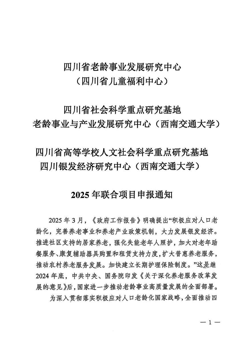 2025年联合项目申报通知